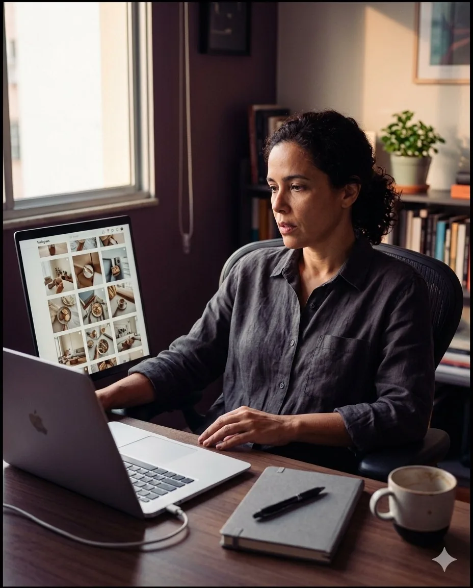 Sempre soube que meu trabalho era bom. O problema era que, quando eu precisava mostrar isso em vídeo, eu diminuía. Travava. Parecia menos do que eu era. O Presença Magnética me deu o treinamento que eu não sabia que estava faltando — não para 'parecer confiante', mas para entender o que estava desorganizando minha presença. Hoje gravo com uma clareza que eu não tinha antes. E isso aparece na forma como os clientes me recebem.